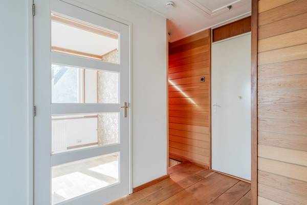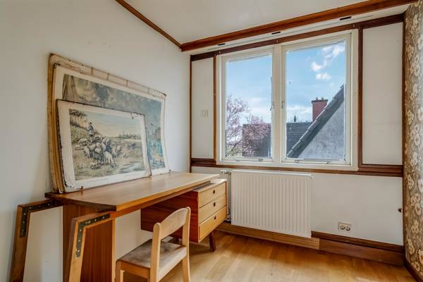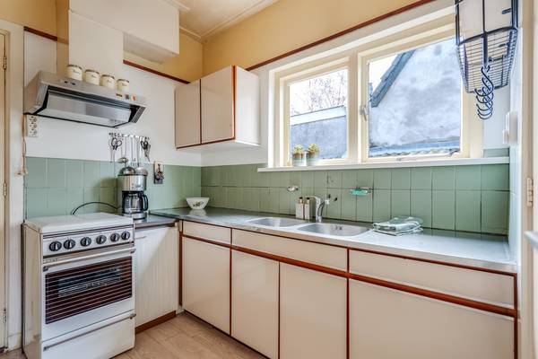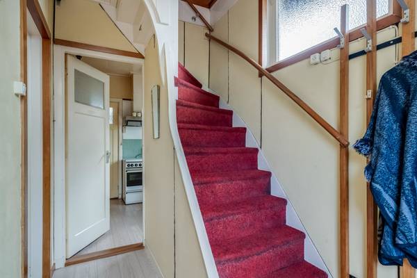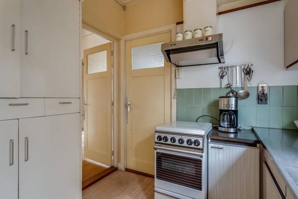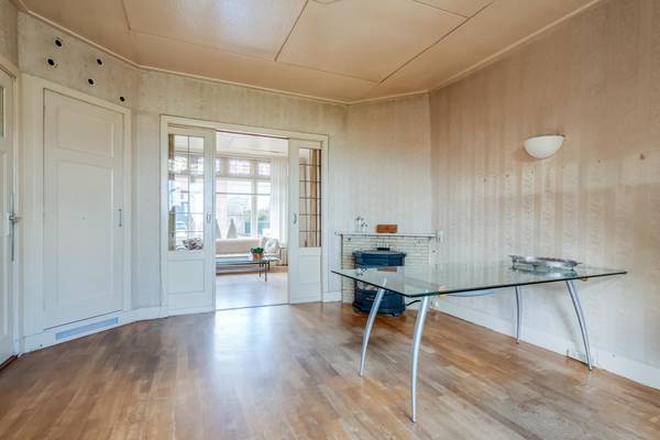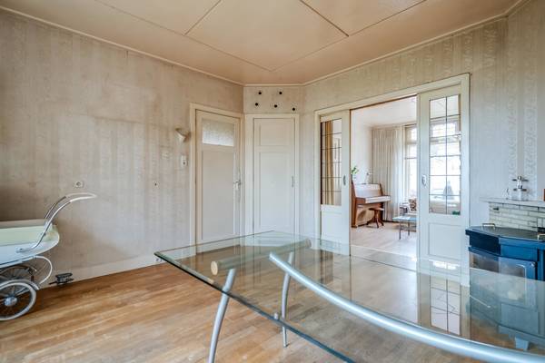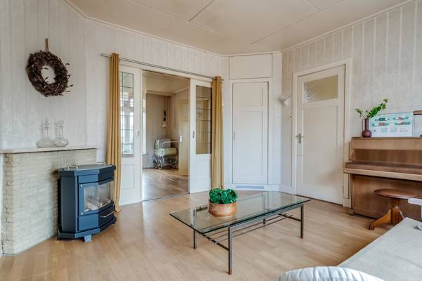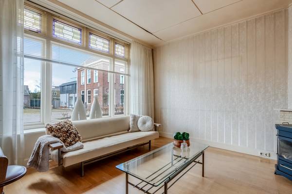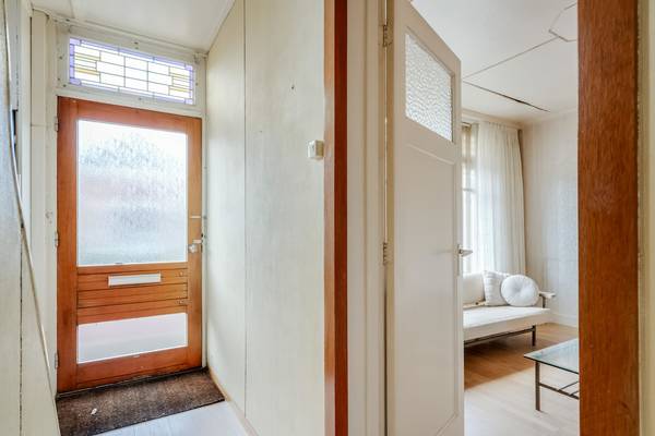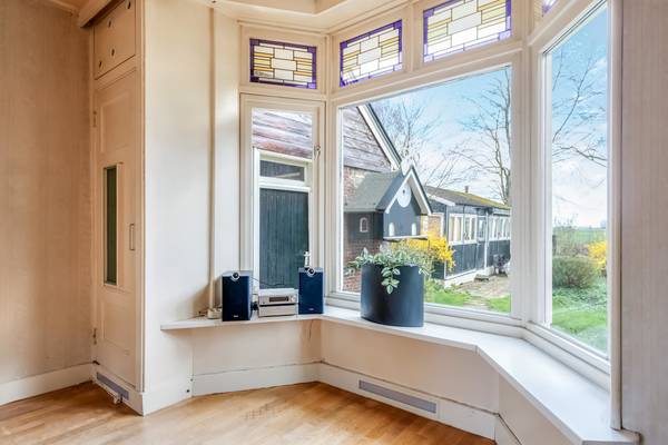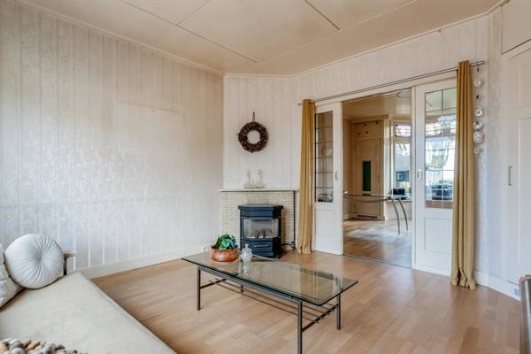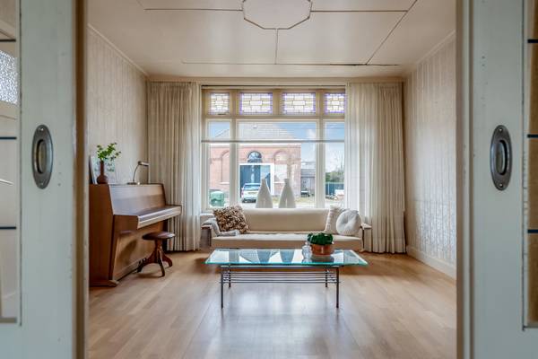 De woning ademt authenticiteit en sfeer, met prachtige elementen zoals glas-in-loodramen en sfeervolle kamer ensuite deuren die de voor- en achterkamer met elkaar verbinden.