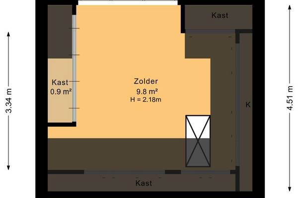 Tweede verdieping: bereikbaar via vlieringtrap, ruimte die ook als slaapkamer te gebruiken is.